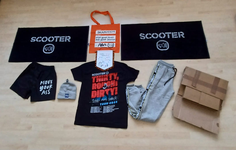 Bei einem kurzen Treffen mit der Band Scooter haben die Bandmitglieder den Wimpel unseres gemeinnützigen Vereins unterschrieben. Ein paar Tage später kam überraschend ein Paket voller Fanartikel, die in einer Online-Auktion für den guten Zweck versteigert werden.